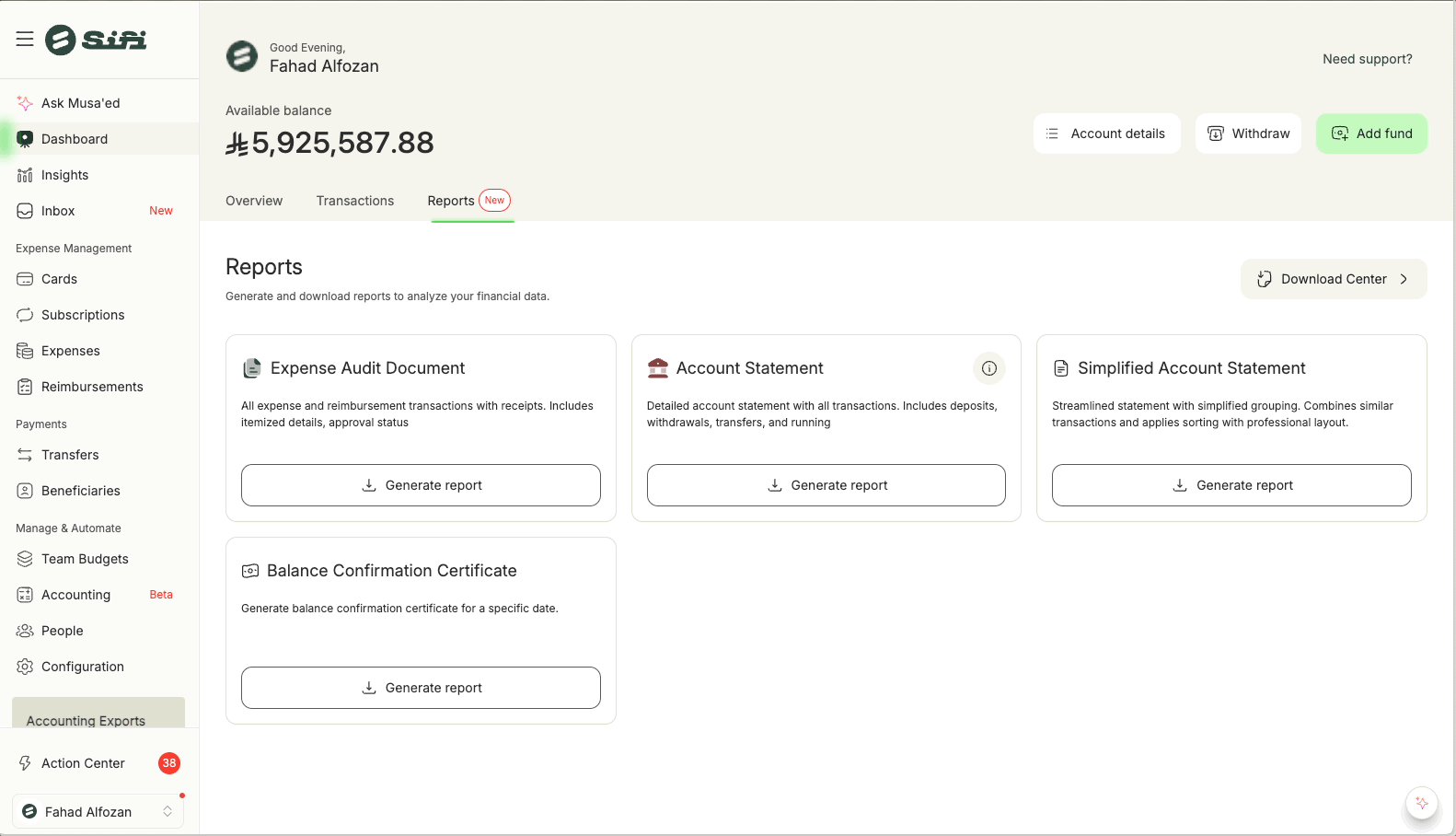 My Actions in SiFi Dashboard