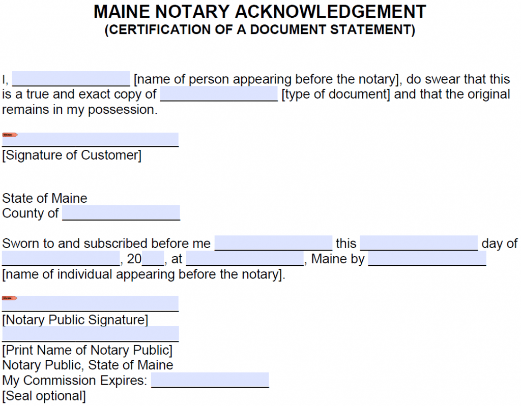 Free Maine Jurat Form Certification of a Document PDF Word