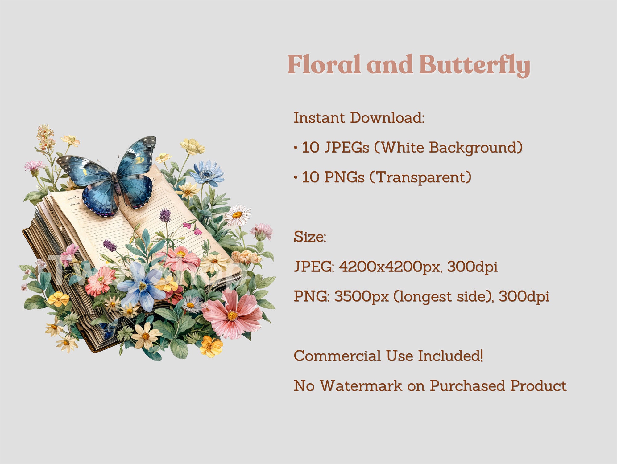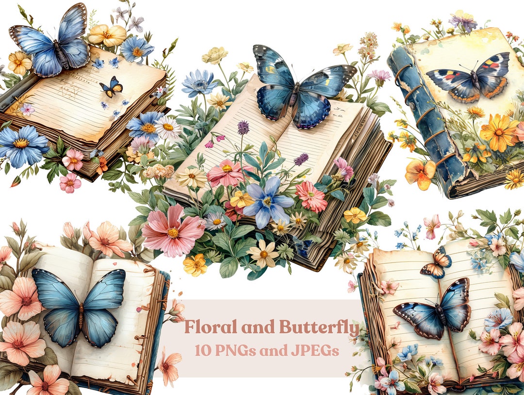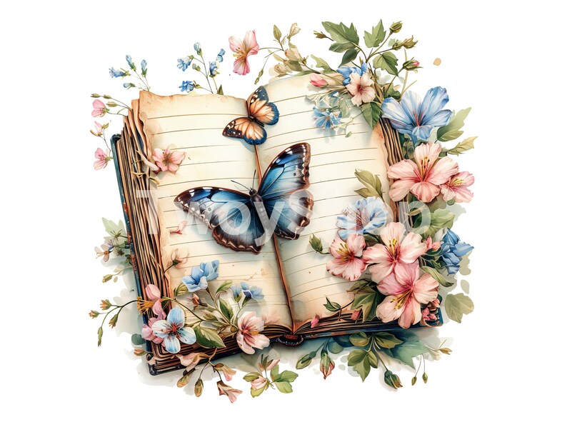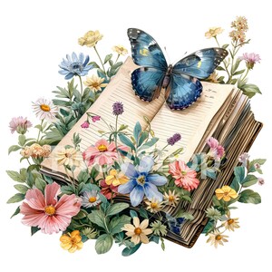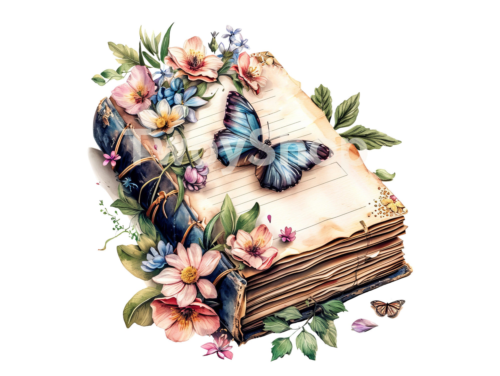 Watercolor Floral Book Clipart Spring Book Printable 10 High Quality