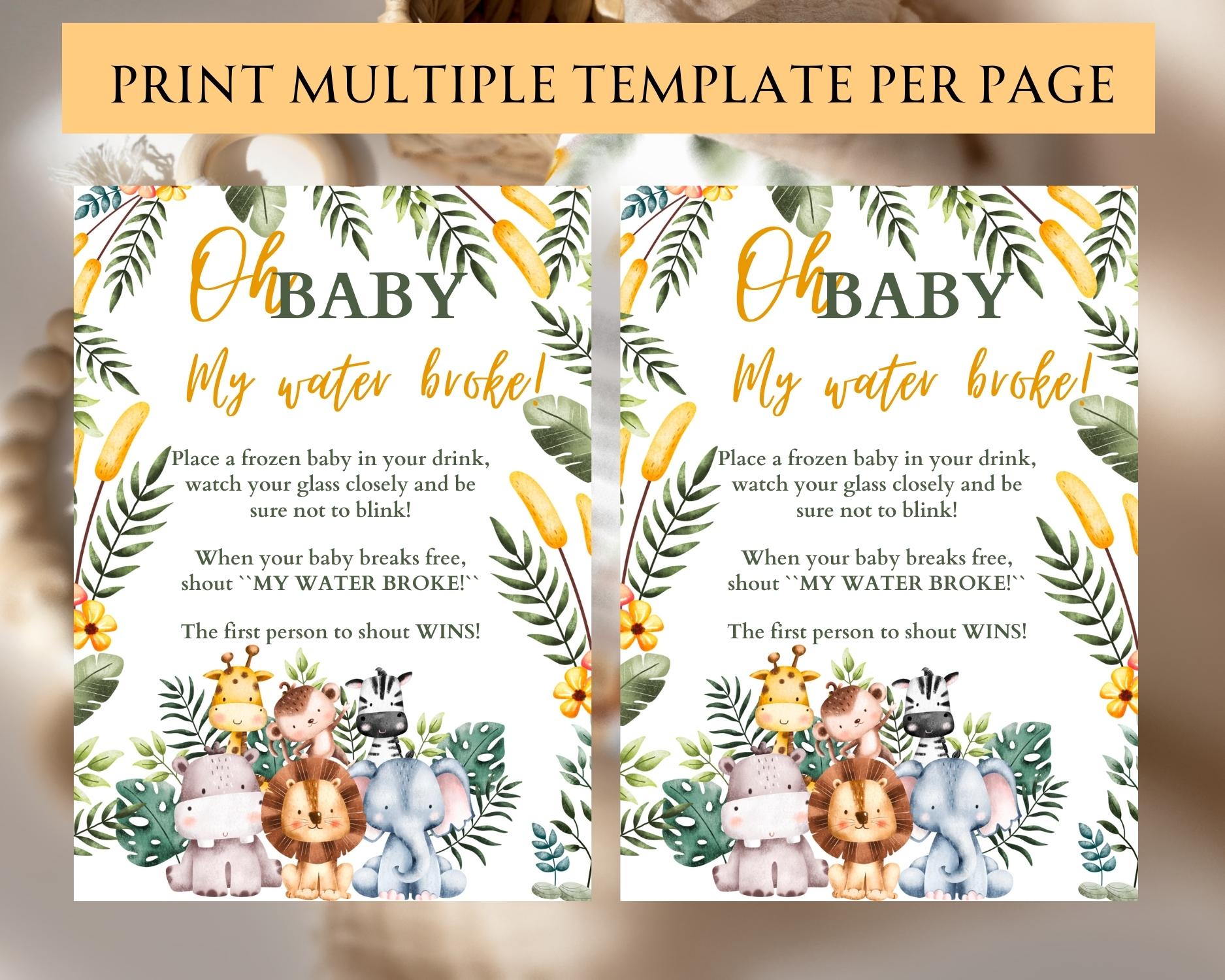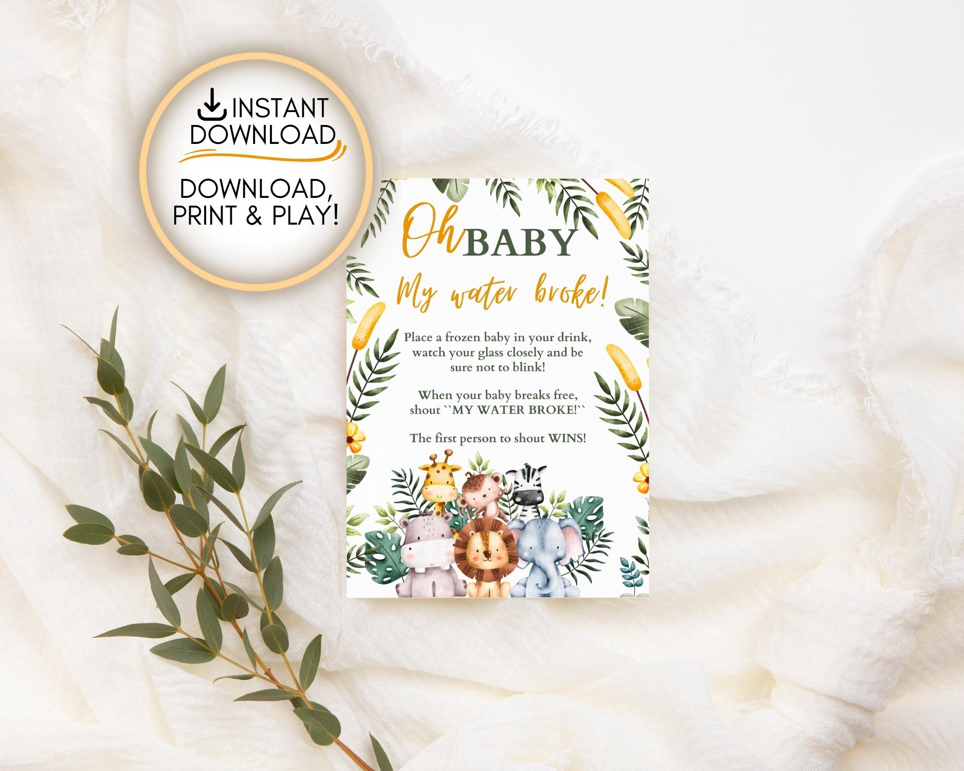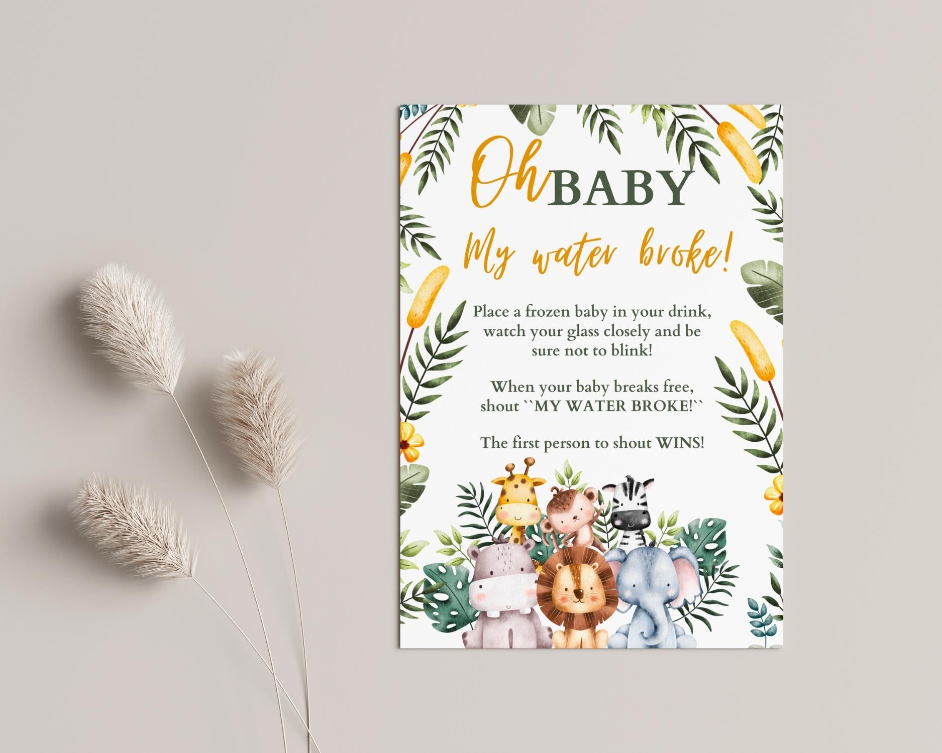 Safari themed My water broke game sign: Editable PDF Download for Baby