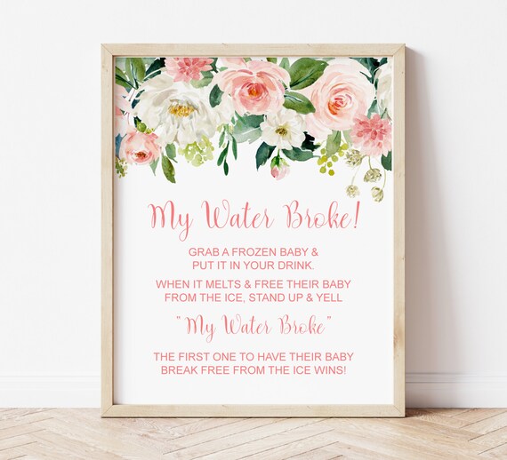 My Water Broke Game Sign Pink Blush Baby Shower Game Printable Ice Cube