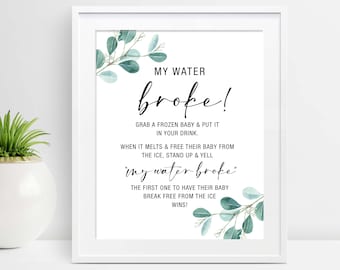 My Water Broke Game Sign Printable Baby Shower Activity Frozen Babies