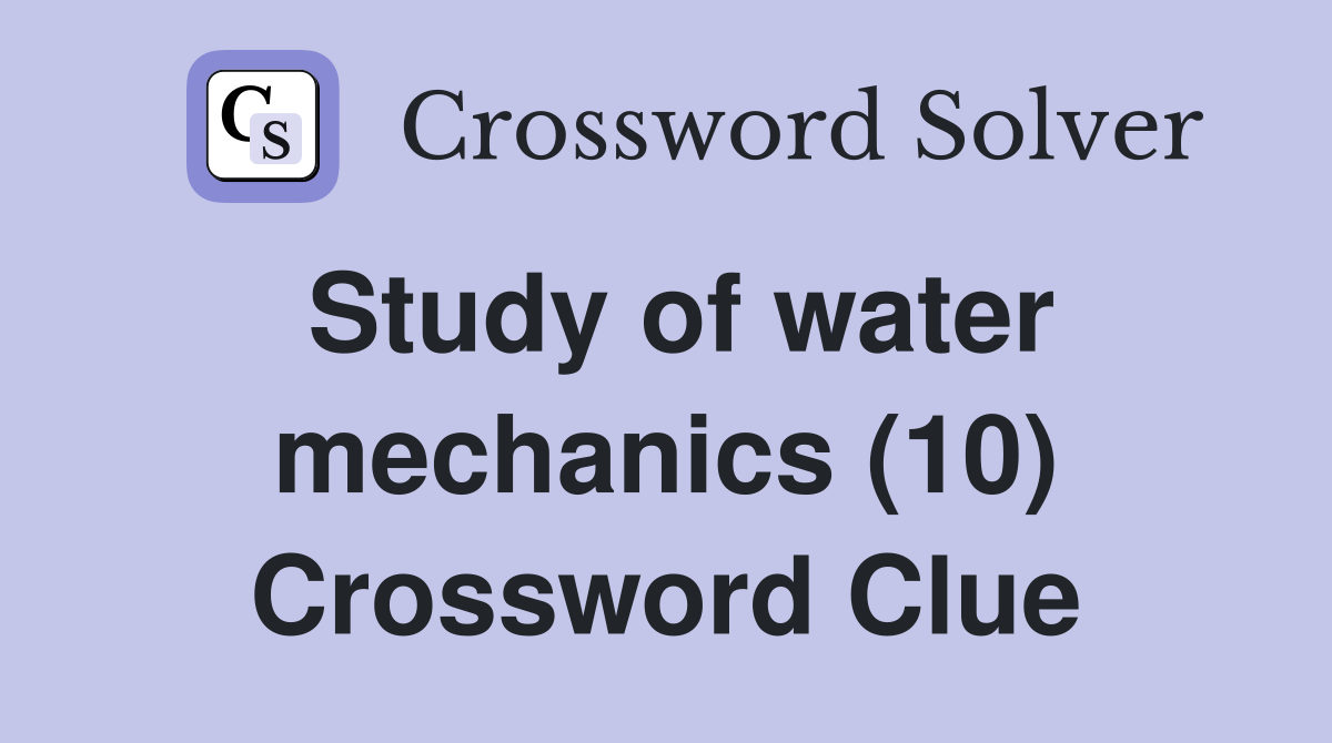 Study of water mechanics (10) Crossword Clue Answers Crossword Solver