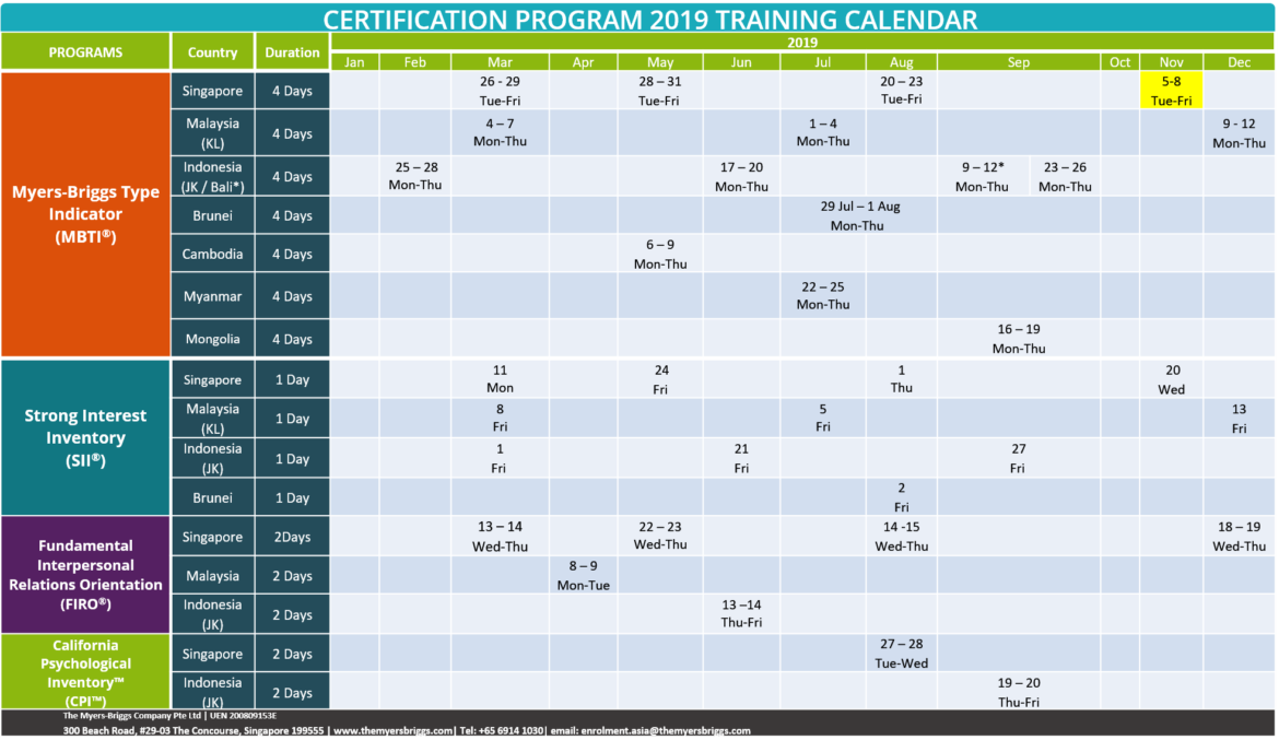 Certification Program Training Calendar 2019 The Myers Briggs Company