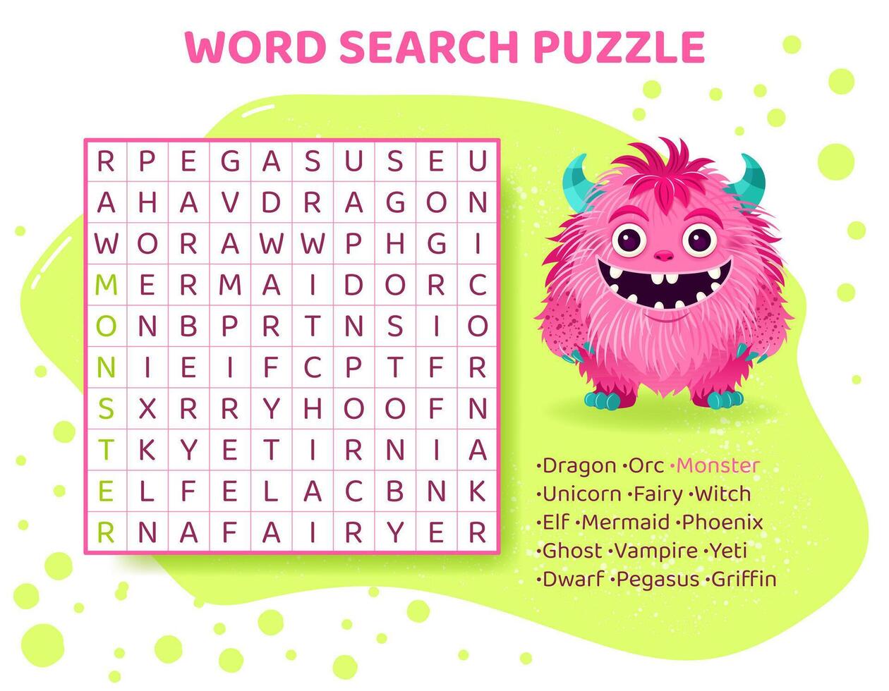 Mythical Creatures Crossword Puzzle Word Search Combo TPT