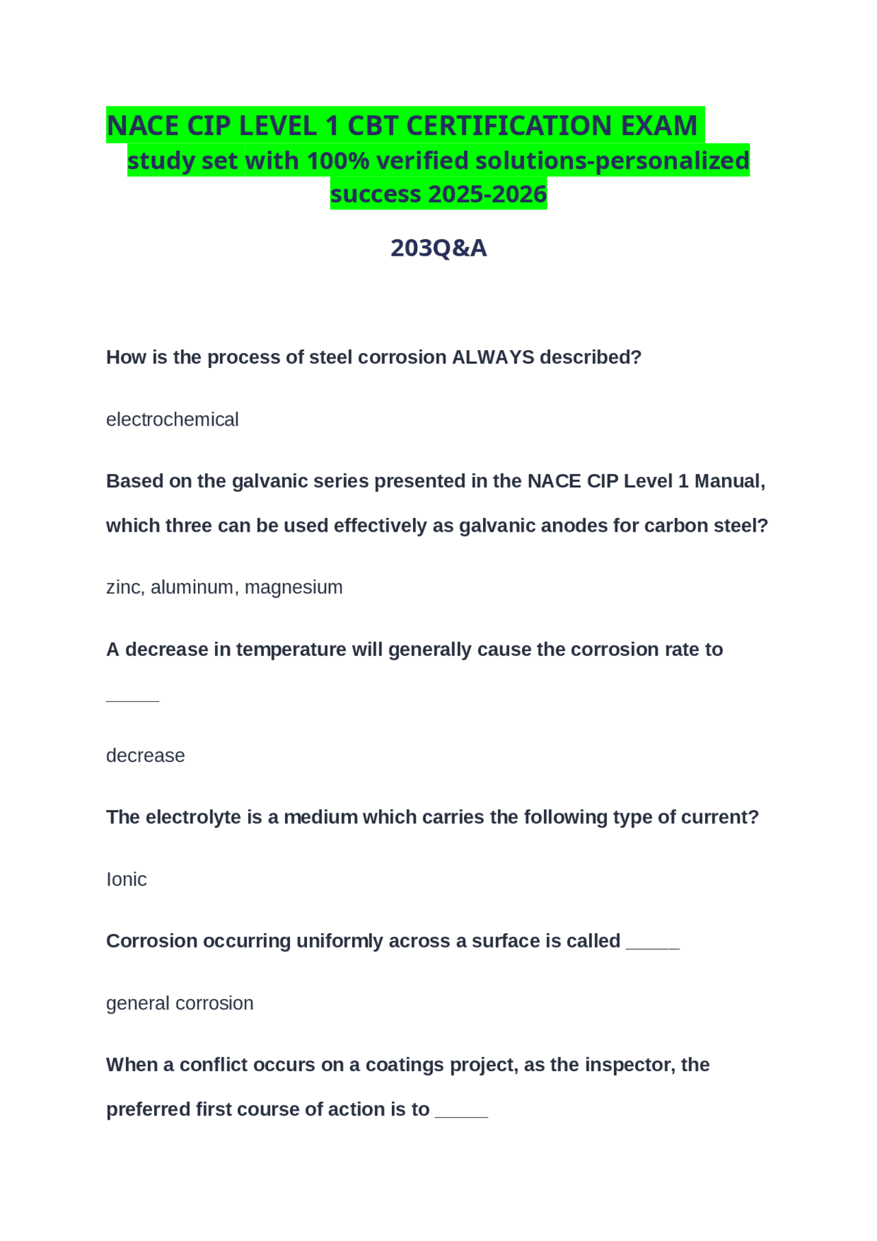 NACE CIP Level 1 Practice Questions and Verified Answers (2023/ 2024