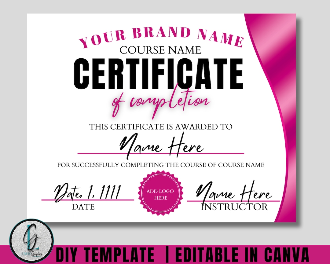 Pink Certficate Certificate of Completion Lash Course MUA Course