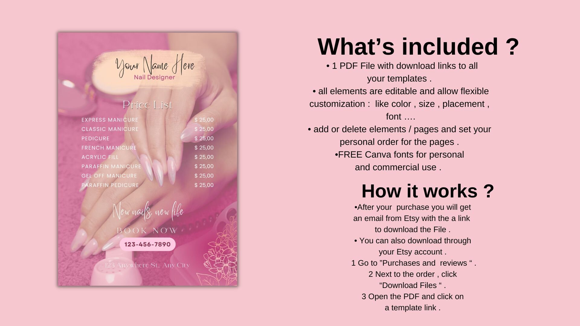 Customizable Nail Salon Price List Template Canva Instant Download