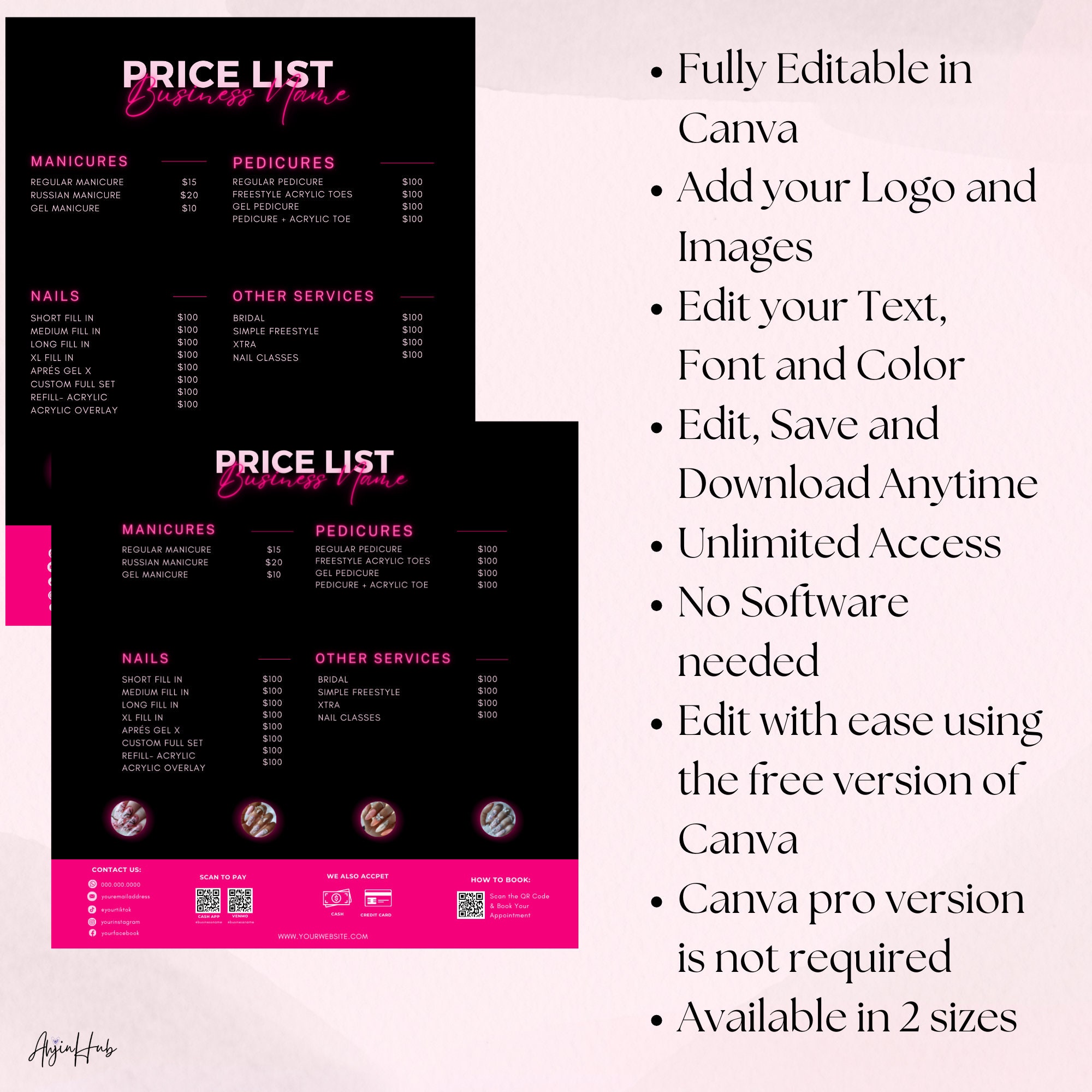 DIY Nail Price List Template Nails Pricing Template Editable Nail