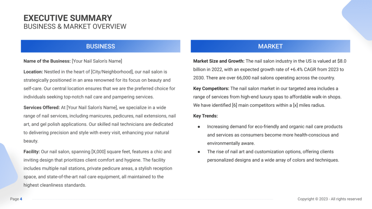 Nail Salon Business Plan Template in Pages Word Google Docs