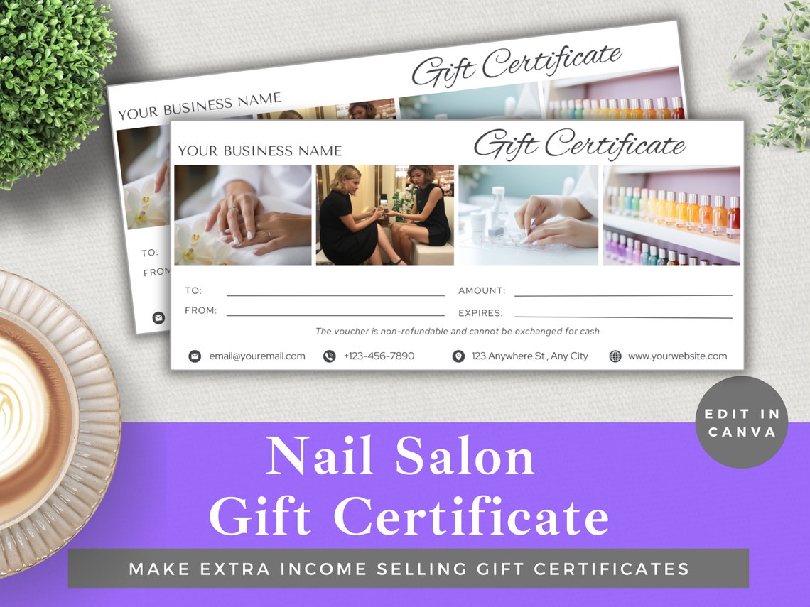 Gift Certificate Template for Nail Salon Canva Editable DIY Etsy
