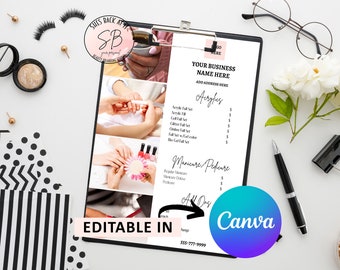 Editable Nail Tech Price List Template Canva Service Menu Flyer for