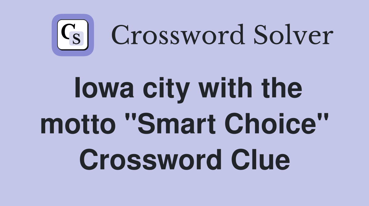 Iowa city with the motto quot Smart Choice quot Crossword Clue Answers