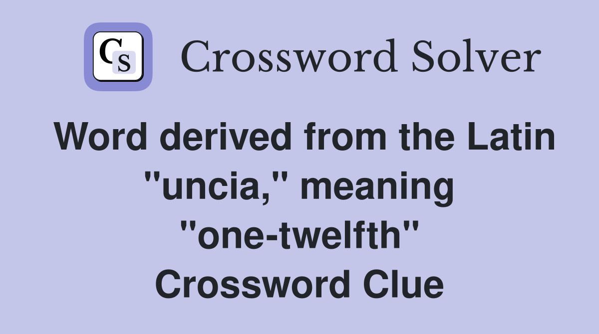 Word derived from the Latin quot uncia quot meaning quot one twelfth quot Crossword