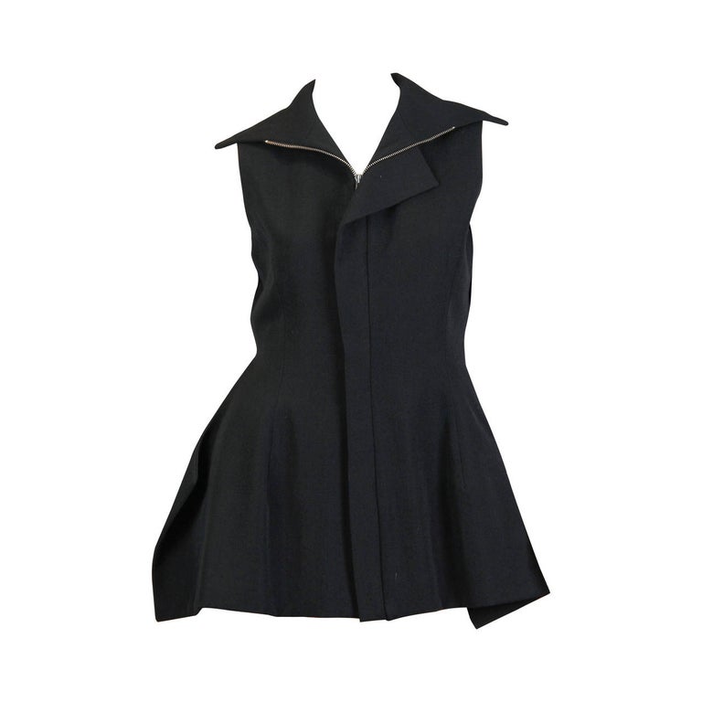 1990S YOHJI YAMAMOTO Black Wool Twill Deconstructed Vest With Two Way