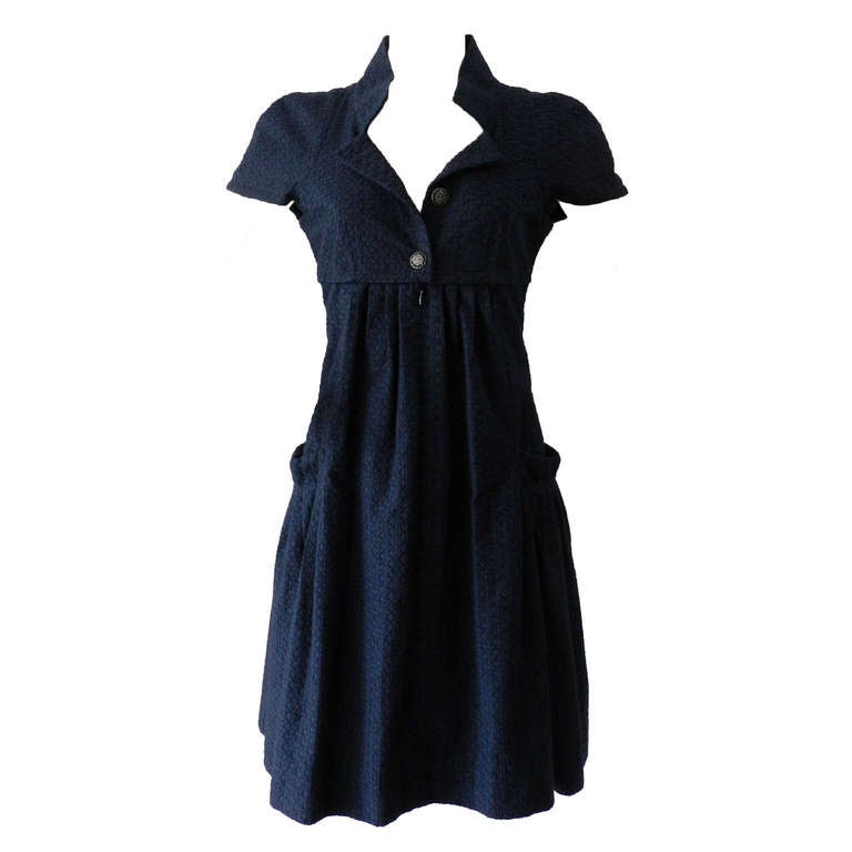 Chanel Navy cotton Short Sleeve Dress at 1stDibs