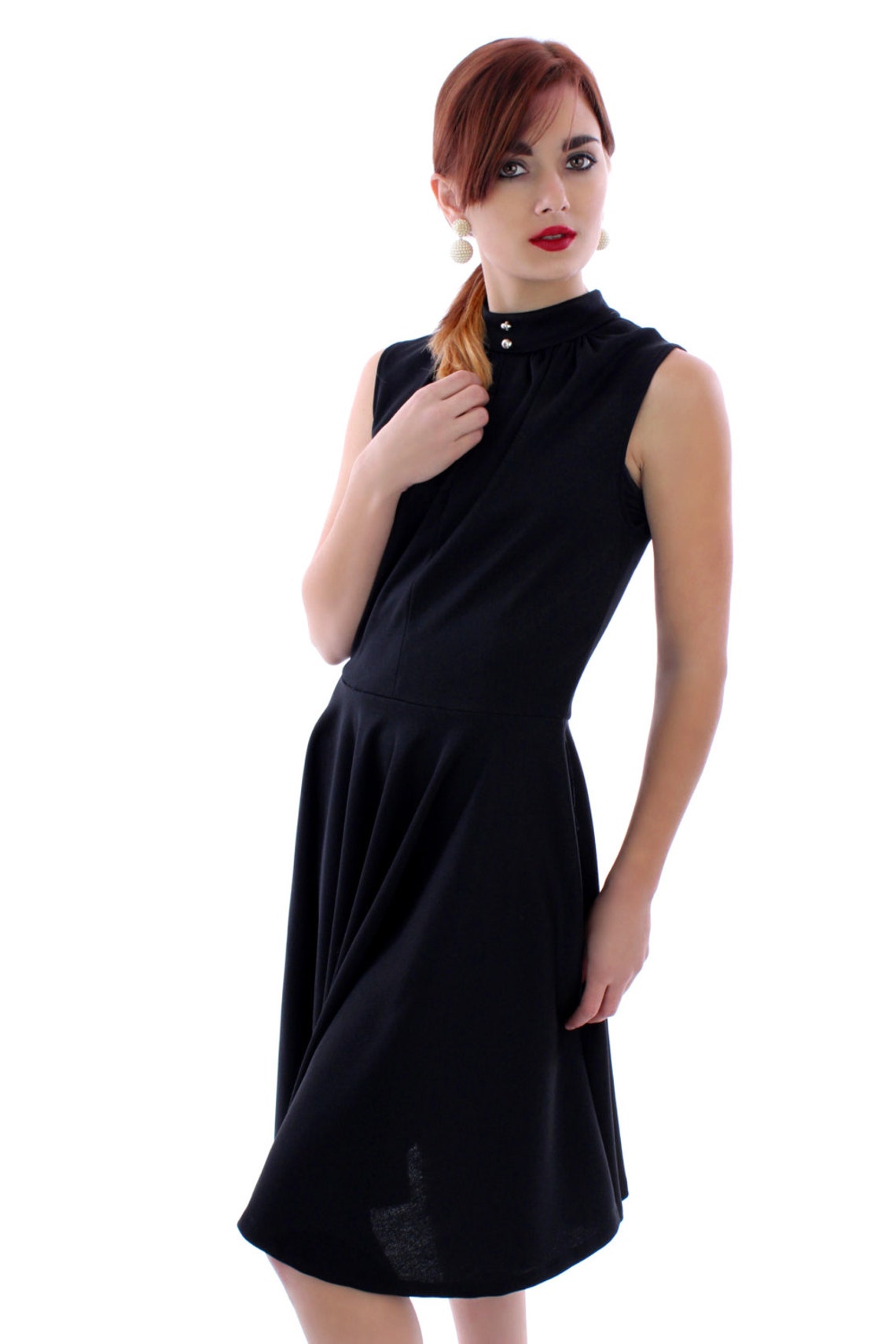 70s Mod Dress Black Circle Skirt A line 60s Classic Silver Buttons Day