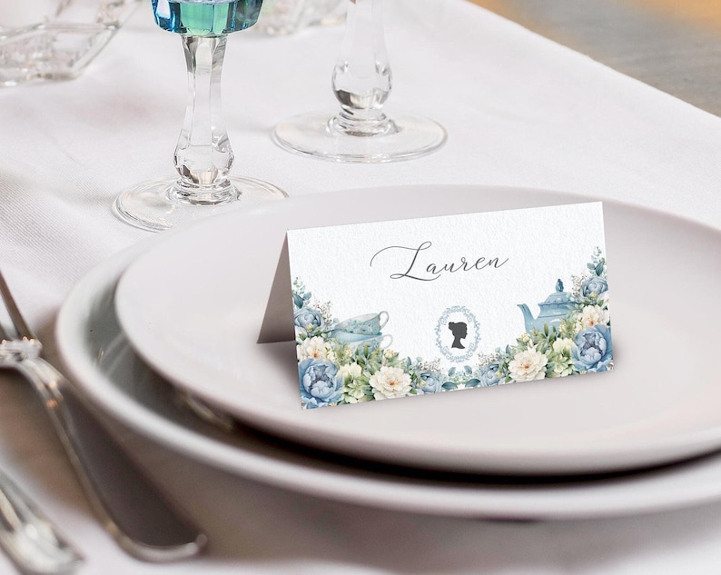 3 5x2 Place Name / Food Tent Card Sage Green Dusty Blue Flowers
