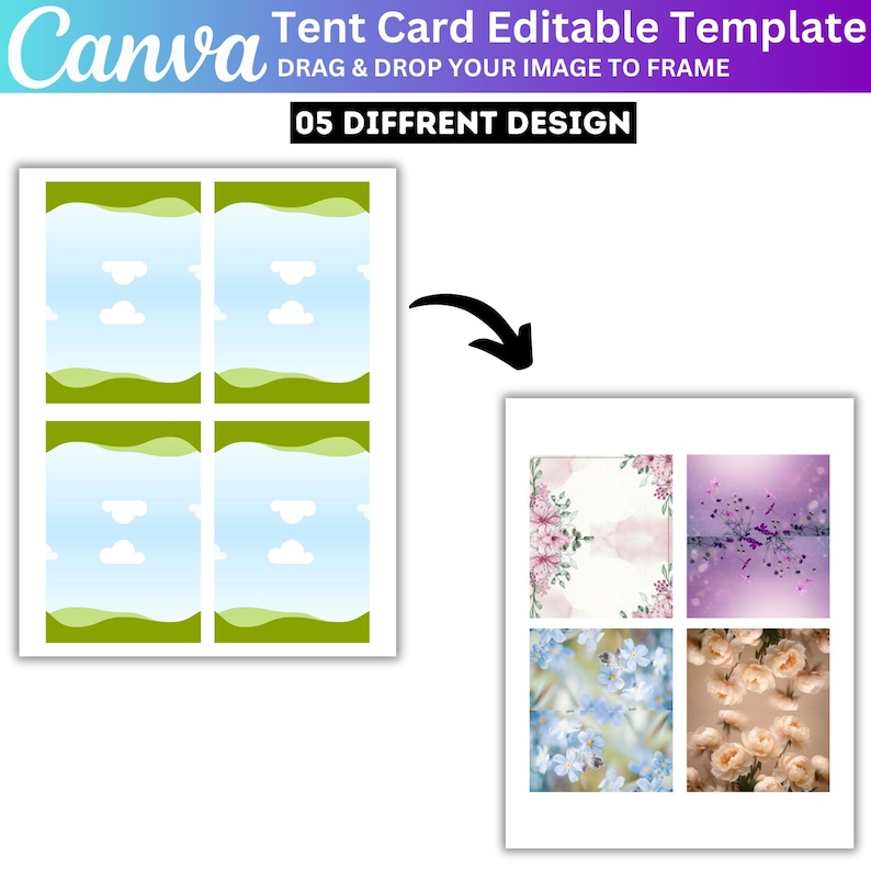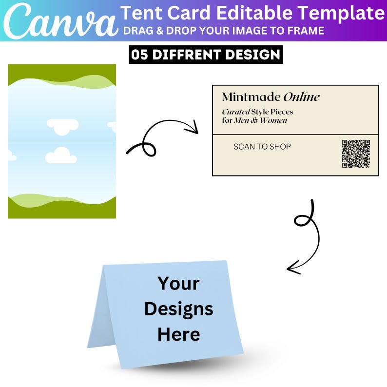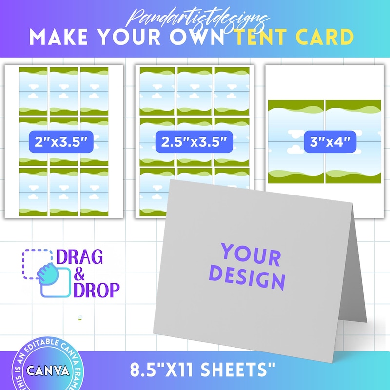 Tent Card Template Canva Editable Tent Cad Bundle Foldable Birthday