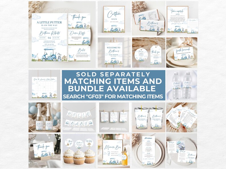Blue Golf Cart Menu Card Template Baby Shower Food Tent Cards GF03 Etsy