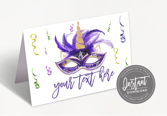 Mardi Gras Food Tent Editable Name Place Cards Unicorn Birthday