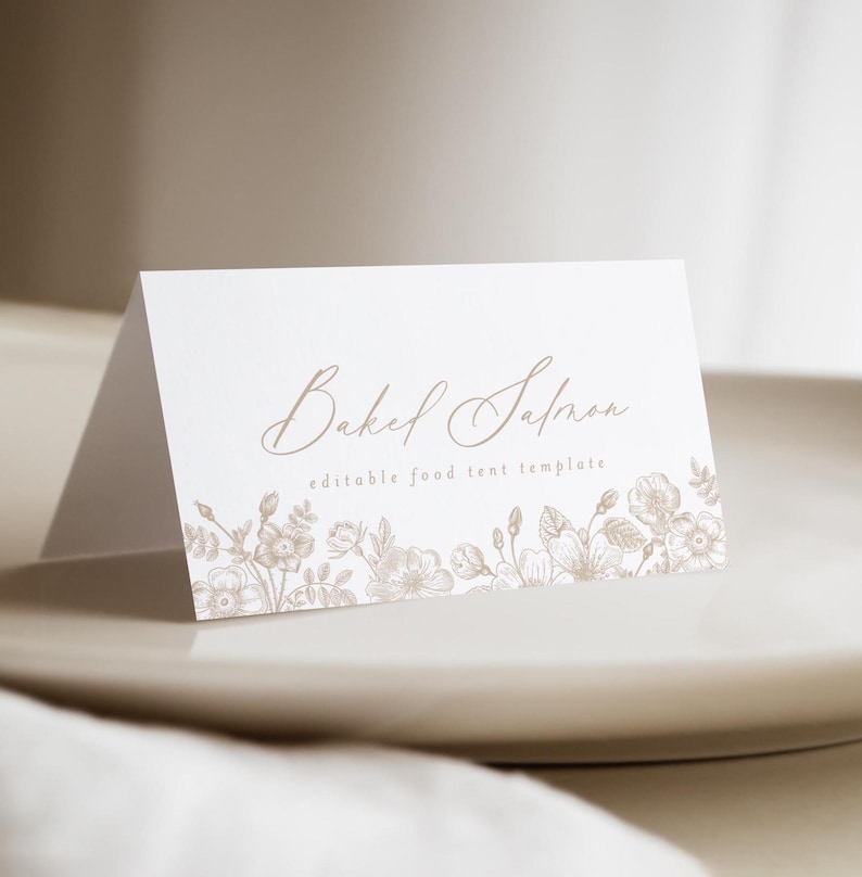 Floral Food Tent Template: Elegant Beige Lace (editable Digital