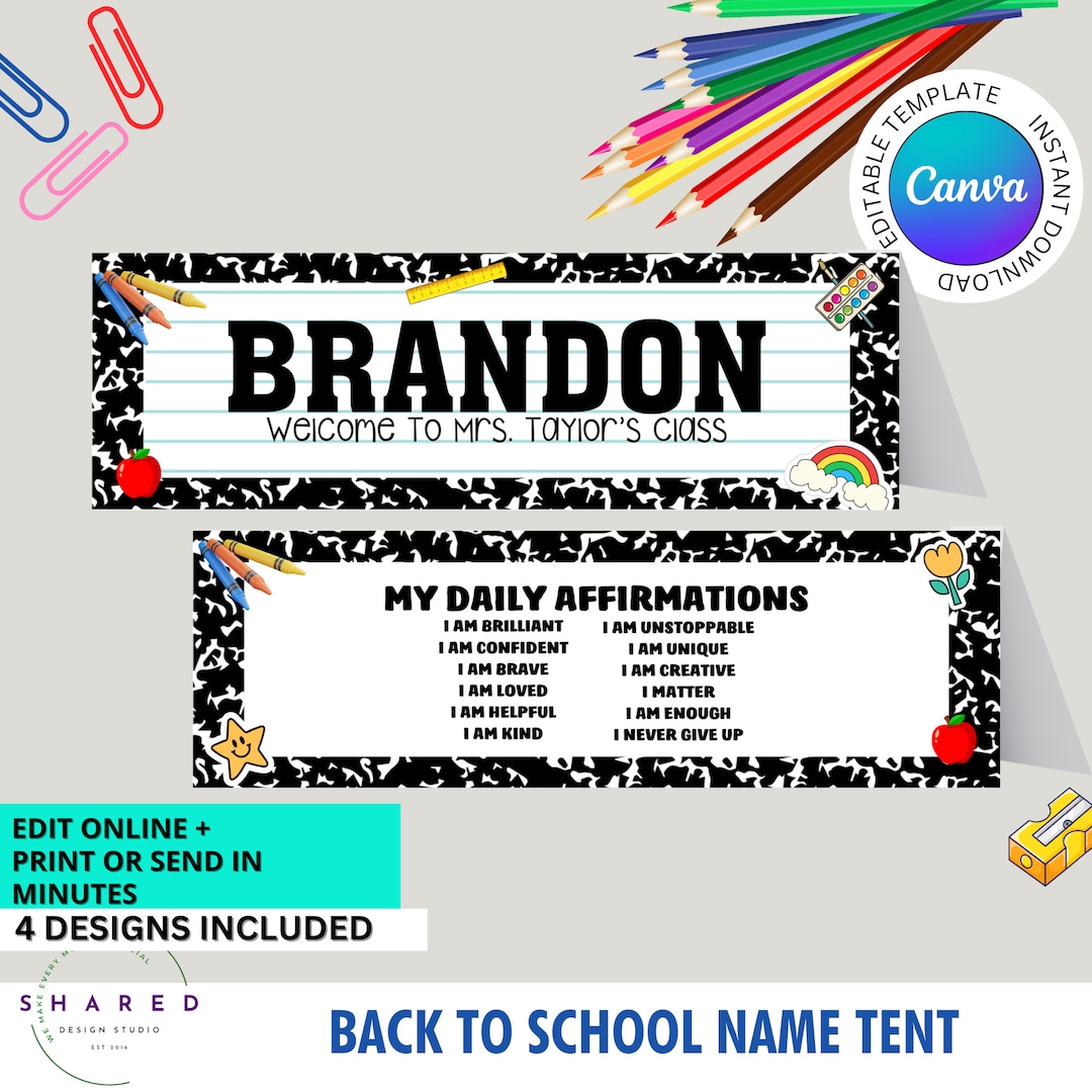 Editable Name Tent Template Printable Composition Classroom Name Tags