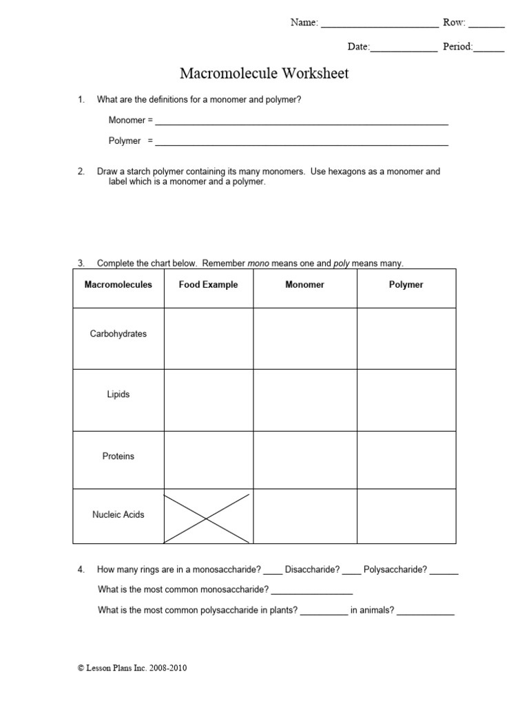 Macromolecule Worksheet Free Worksheets Samples