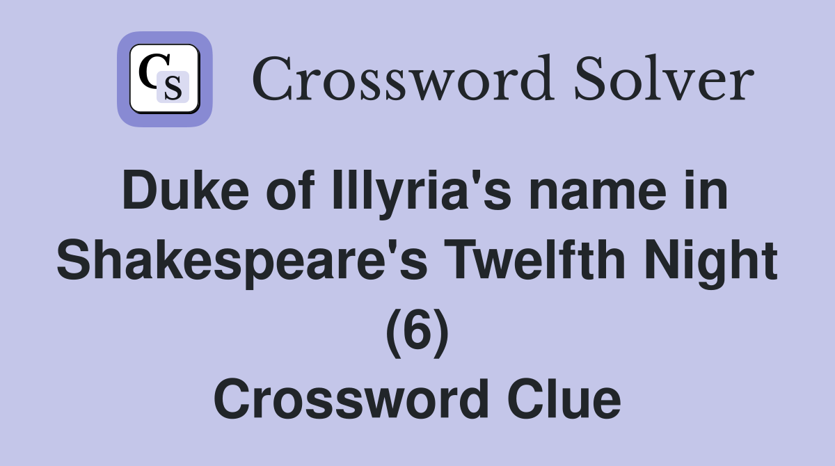 Duke of Illyria #39 s name in Shakespeare #39 s Twelfth Night (6) Crossword