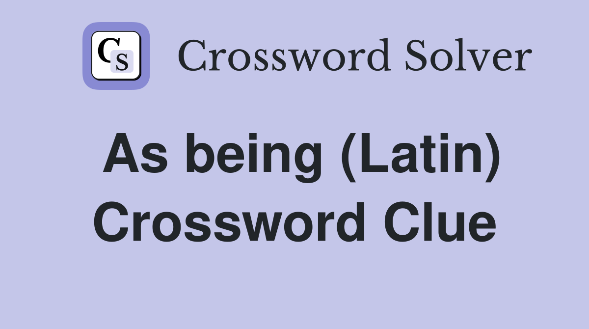 As being (Latin) Crossword Clue Answers Crossword Solver