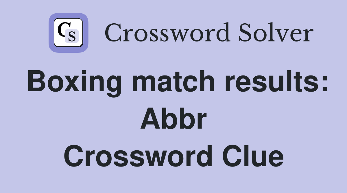 Boxing match results: Abbr Crossword Clue Answers Crossword Solver