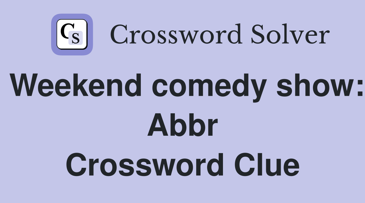 Weekend comedy show: Abbr Crossword Clue Answers Crossword Solver