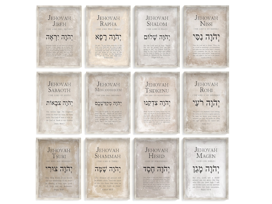 Set of 15 Bundle Hebrew Names of God Printable Art Jehovah Jireh Rapha