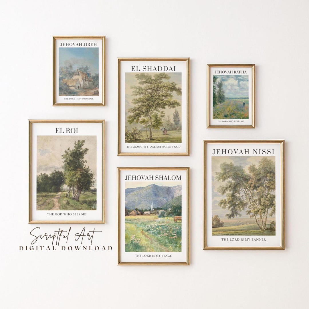 12 Hebrew Names of God Bible Verse Printable Wall Art Gallery Bundle