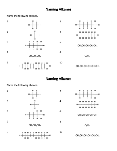 Naming Alkanes Worksheet printable pdf download
