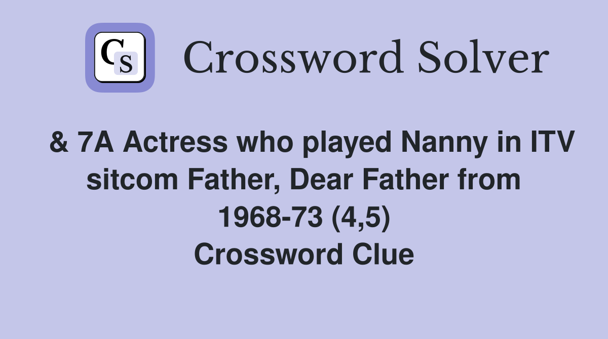 7A Actress who played Nanny in ITV sitcom Father Dear Father from