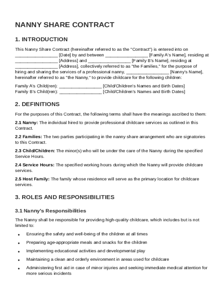 Free Nanny Share Contract Template to Edit Online