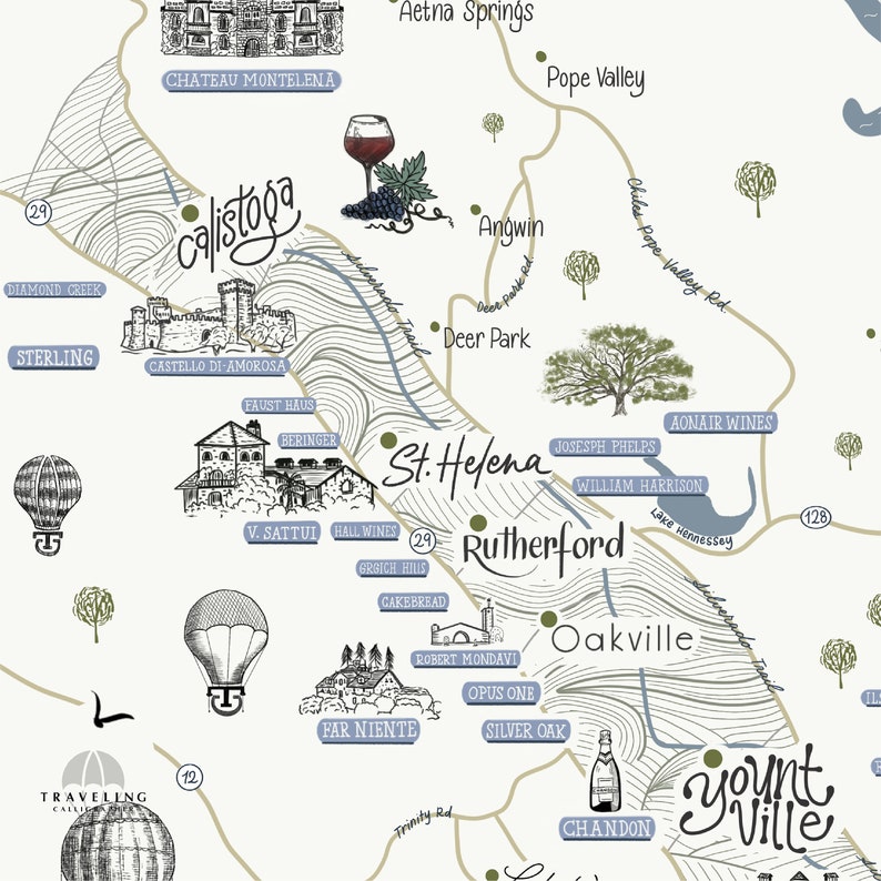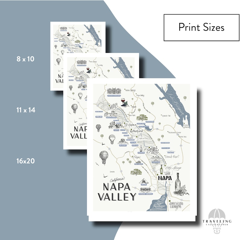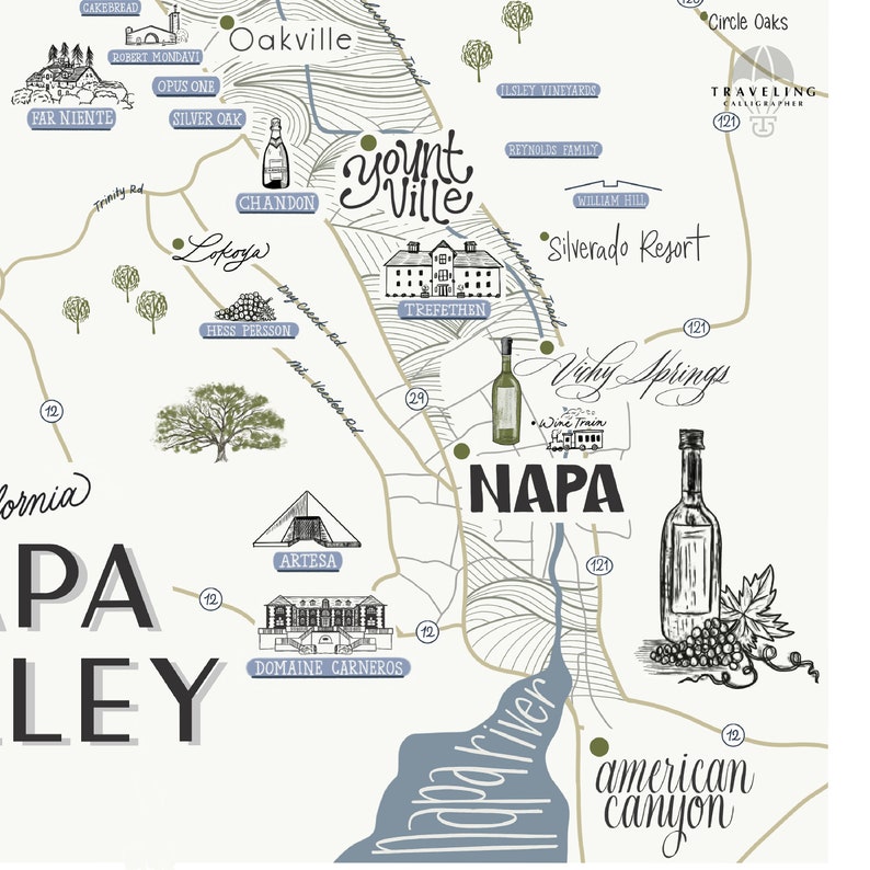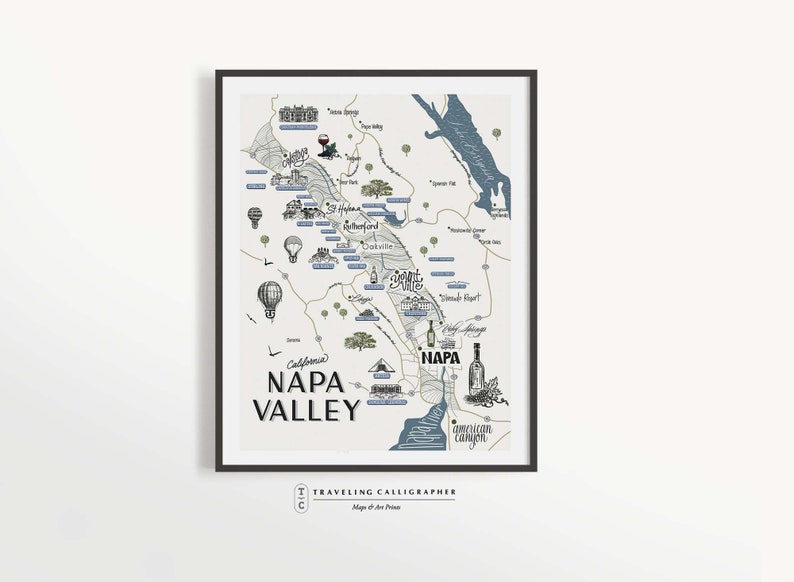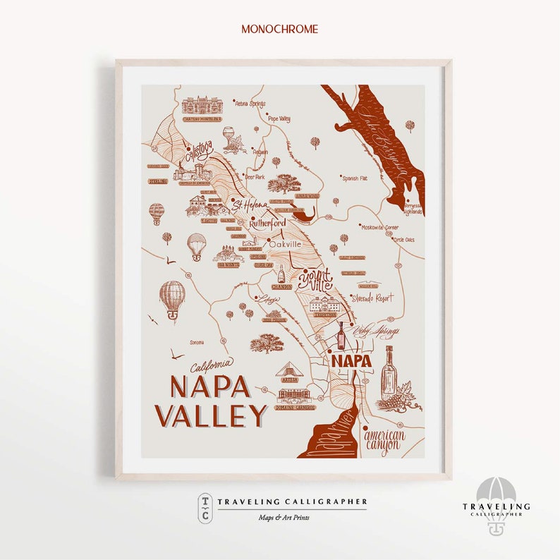 Napa Valley Wine Map Print: Hand lettered California Art Etsy