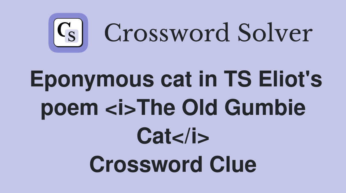 Eponymous cat in TS Eliot s poem The Old Gumbie Cat Crossword Clue