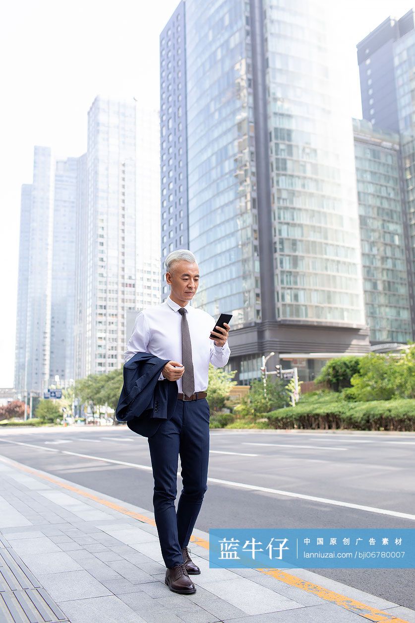 自信的商务人士使用手机 蓝牛仔影像 中国原创广告影像素材