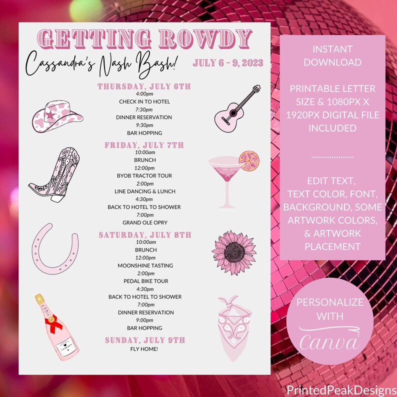 Nashville Bachelorette Itinerary Template Digital Schedule Instant