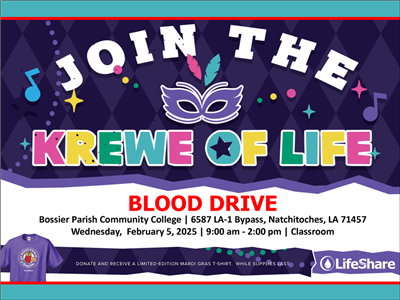 BPCC Events Calendar LifeShare Blood Drive (Natchitoches Campus)