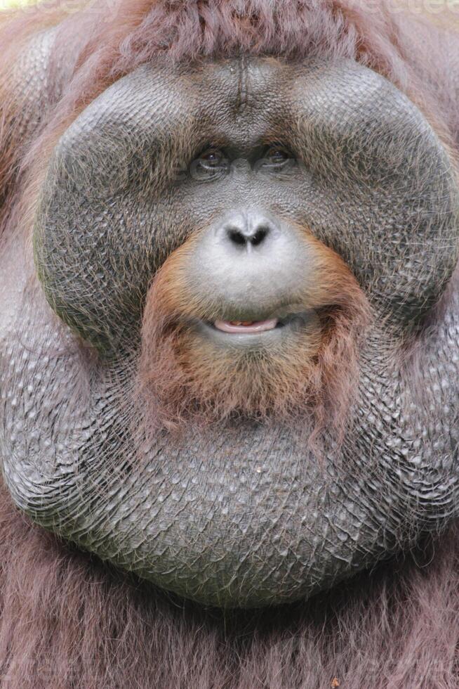 Close up face of orangutan the native great ape of Indonesia and