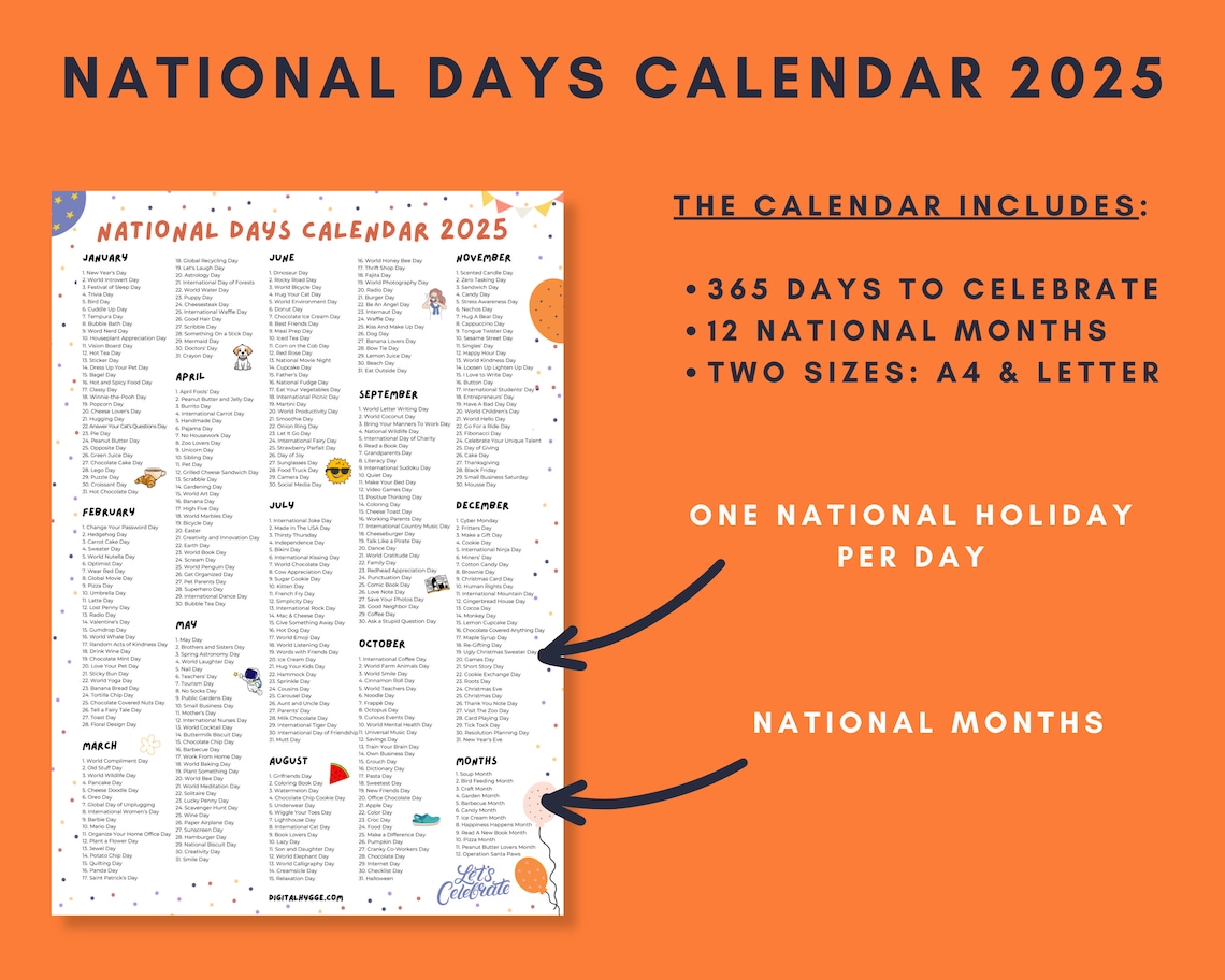 2025 National Days Calendar Printable: Fun Wacky Holidays (PDF) Etsy