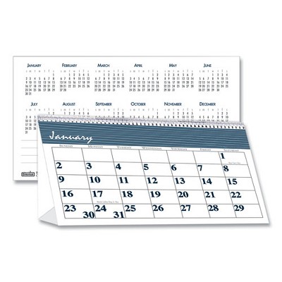 Bar Harbor Recycled Desk Tent Monthly Calendar 7 X 4 25 White/blue