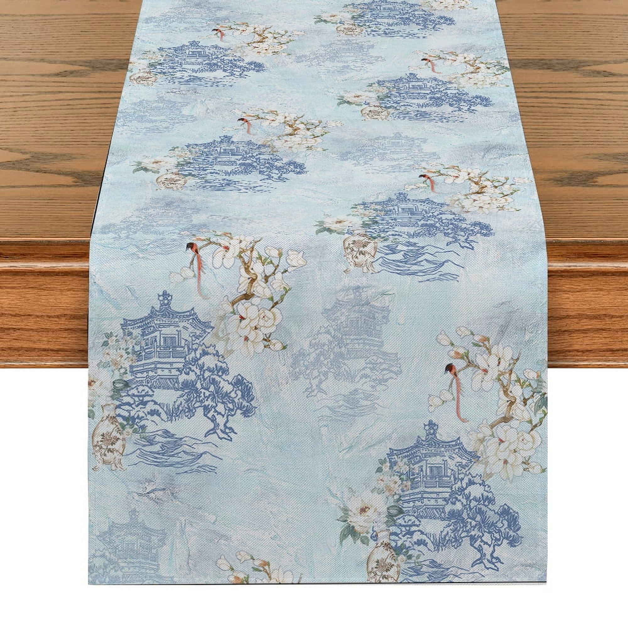 Chinese Watercolor National Geometry Table Runners Washable Dresser