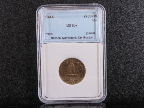 1964 D WASHINGTON QUARTER 25C COIN NATIONAL NUMISMATIC CERTIFICATION