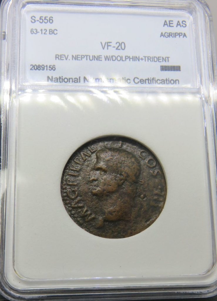 Moeda Ae As de Agrippa Encapsulado pela National Numismatic