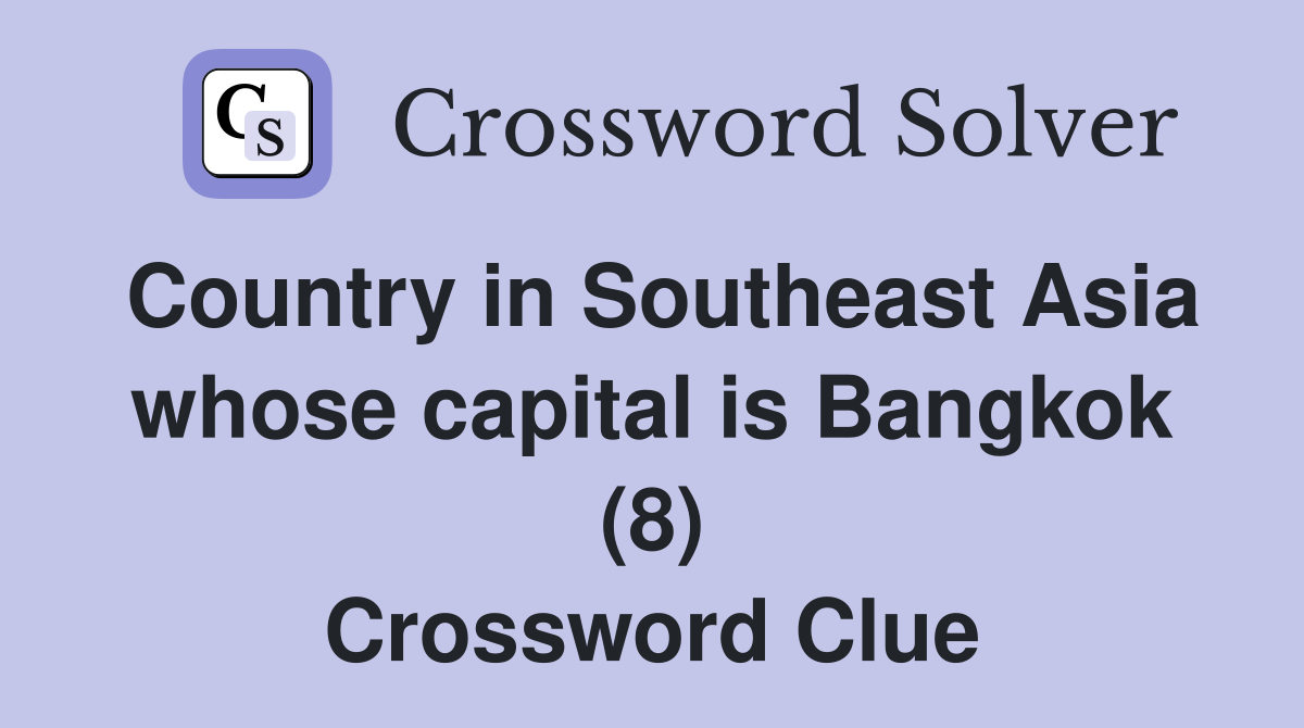 Country in Southeast Asia whose capital is Bangkok (8) Crossword Clue