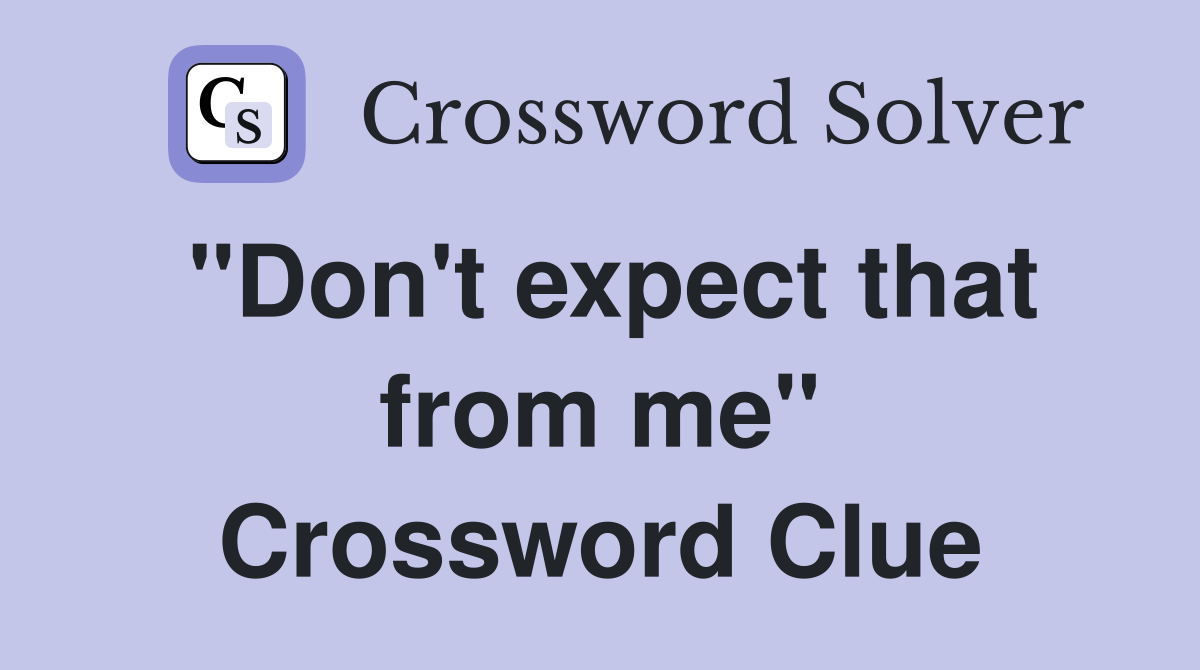 quot Don #39 t expect that from me quot Crossword Clue Answers Crossword Solver